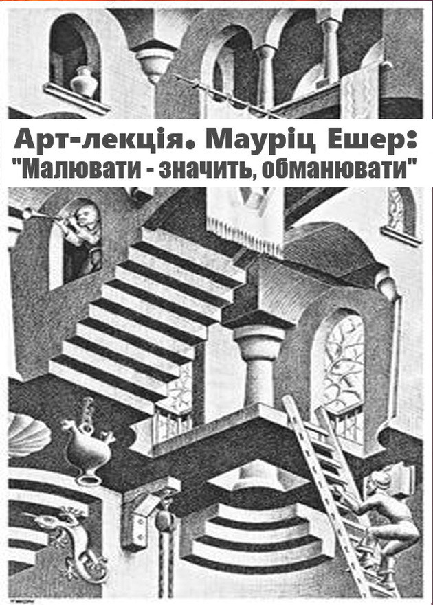 З мультимедійної арт-лекції Ви дізнаєтесь про дивовижного голландського художника Мауріца Ешера (1898-1972), ще за життя названого "майстром оптичних ілюзій". Він обрав своїм життєвим кредо фразу "Малювати - значить обманювати", але Ви зрозумієте, що за створеними ним ілюзіями стоять математичі розрахунки.