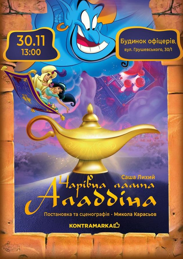 Глядачі стають свідками неймовірної історії кохання простого юнака Аладдіна та красуні царівни Будур. На шляху один до одного закохані стикаються зі смертельною небезпекою в особі візира Джафара та його хитрою служниці Іфритки. Але, на щастя, на допомогу Аладдіну приходить його новий друг - мудрий і веселий Джин, що з'явився з чарівної лампи.