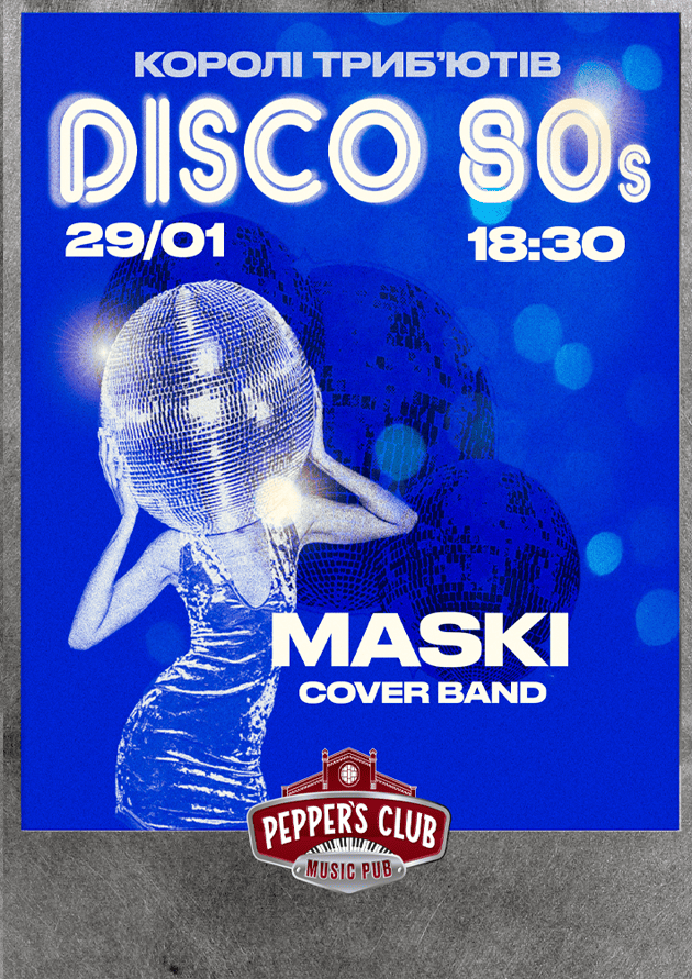 Запрошуємо на триб’ют-концерт золотих хітів Disco 80’s від гурту Maski — вечір, сповнений драйву, стилю та справжньої музичної магії диско.