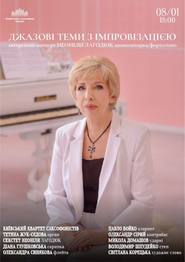 На свій традиційний щорічний авторський концерт «Джазові теми з імпровізацією» запрошує композиторка, визначна піаністка, викладачка і популяризаторка джазу Неоніла Лагодюк.