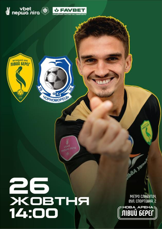 Матч на Арені «Лівий Берег» відбудеться у неділю, 26 жовтня. Початок – о 14:00. Вхід для вболівальників відкриється з 13:00.