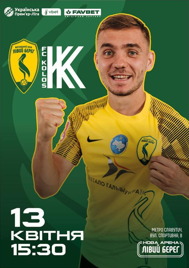 У неділю, 13 квітня, київський «Лівий Берег» прийме ковалівський «Колос» в матчі 24-го туру Прем’єр-ліги. Початок поєдинку на Арені «Лівий Берег» - о 15:30.