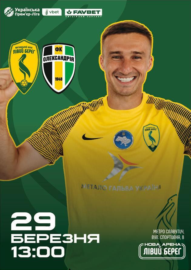 У суботу, 29 березня, «Лівий Берег» прийме «Олександрію» в матчі 22-го туру Прем’єр-ліги. Початок поєдинку на Арені «Лівий Берег» - о 13:00.