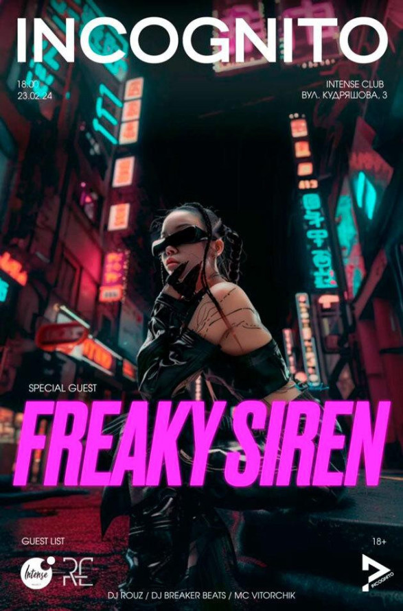 Хто така Freaky Siren? Freaky Siren — 20-річна Каріна з Дніпра. Якось у дитинстві вона почула, як із вікон хтось дуже гарно співав. А ще — батько Каріни дуже любить джаз і соул. Разом це прищепило їй любов до музики, якою вона займається з дитинства. В 17 років вона почала писати й випускати перші треки. Ті пісні випущені під іншим ім’ям та є у власності продюсерів, з якими артистка перестала працювати у 2021 році. Крім цього, вона активно вела блог у тіктоці та інстаграмі та займалася модельною діяльністю.