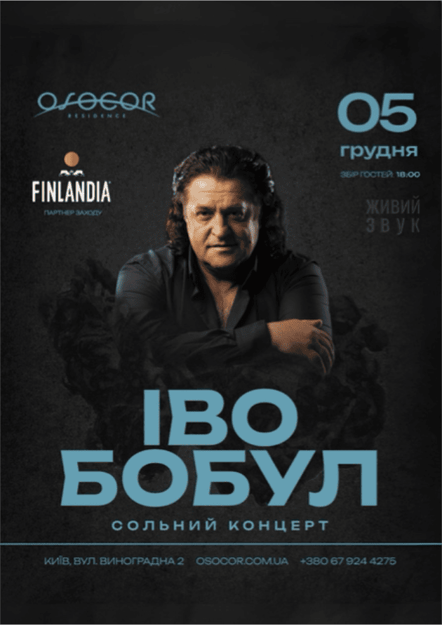 5 грудня 2025 року в Osocor Residence відбудеться концерт Іво Бобула у Києві.