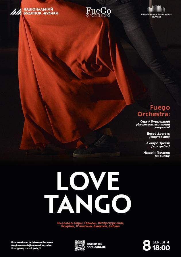 Love Tango – концерт легендарного аргентинського танго у виконанні Fuego Orchestra в оригінальному інструментальному складі.