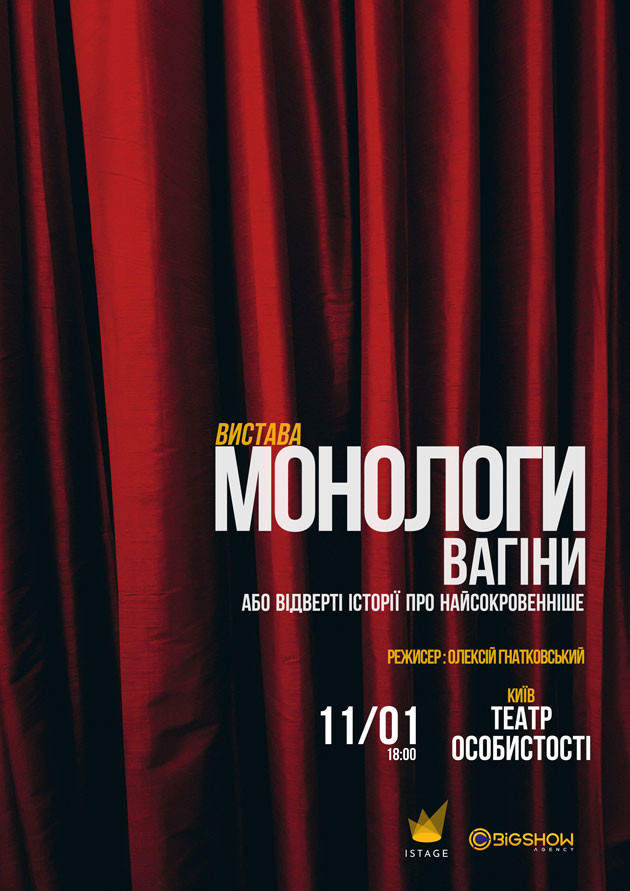 "Монологи вагіни" — це зізнання, гострі злами і життєві історії, що торкаються найпотаємніших сторінок жіночої душі. Вистава, створена за мотивами п'єси Ів Енслер, кидає виклик стереотипам і піднімає питання, які часто залишаються поза увагою суспільства.