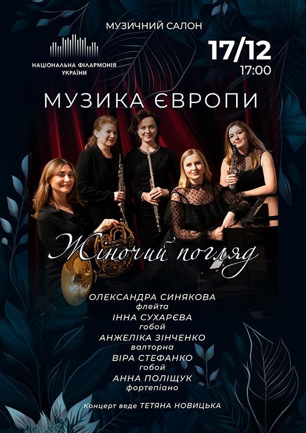 Прем’єра програми Музика Європи. Жіночий погляд і перший спільний виступ нового духового і суто жіночого ансамблю, створеного за ініціативи піаністки Анни Поліщук. Це унікальний проєкт в українському музичному просторі, якому немає аналогів. Жінки – виконавиці на флейті, гобої, валторні в ансамблі із фортепіано, як центральним та об’єднуючим інструментом, – запрошують у мандрівку в просторі та часі, різними епохами та країнами Європи, даруючи публіці естетичне та інтелектуальне задоволення від побаченого та почутого.