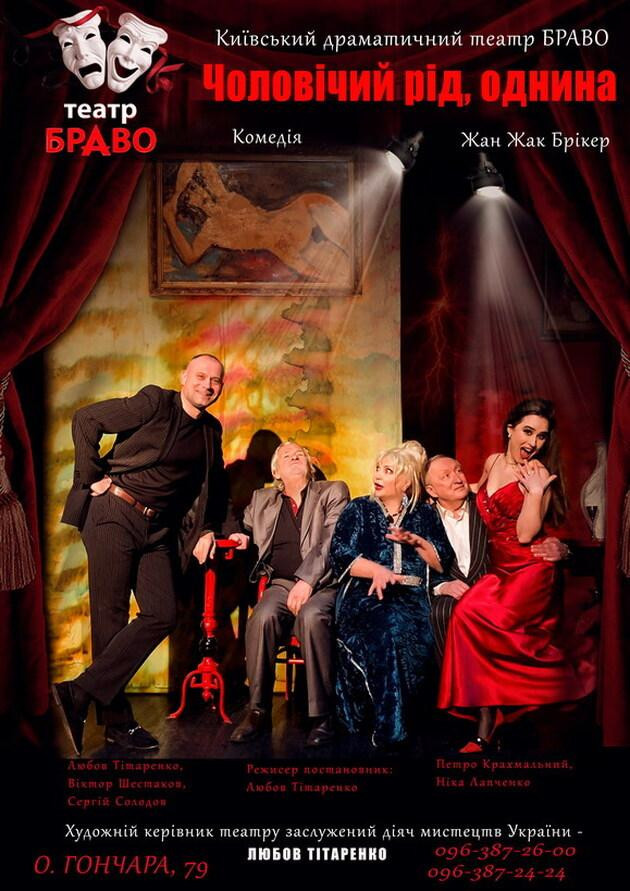 Чергова ефектна інтерпретація постановки за мотивами найвідоміших французьких авторів Моріса Ласега і Жан-Жака Брікер у виконанні колективу "Браво" очікує жителів столиці. Не просто спектакль - масштабна постанова, що завжди створює в душі глядача атмосферу свята. Це легка іскрометна комедія, зрозуміла всім і улюблена багатьма цінителями театрального мистецтва. Пікантний сюжет і дотепні жарти, море гумору і позитивних емоцій - те, що чекає вас на сцені театру "Браво" цієї зими, і заради чого варто купити квиток на “Мужской род, единственное число”.