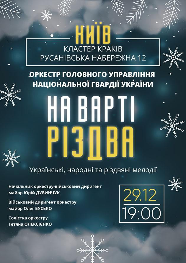 У виконанні Оркестру Головного управління Національної гвардії України прозвучать українські, народні й різдвяні мелодії, що торкнуться самого серця. Це не просто концерт — це жива історія, натхненна любов’ю до України та світлом Різдва.