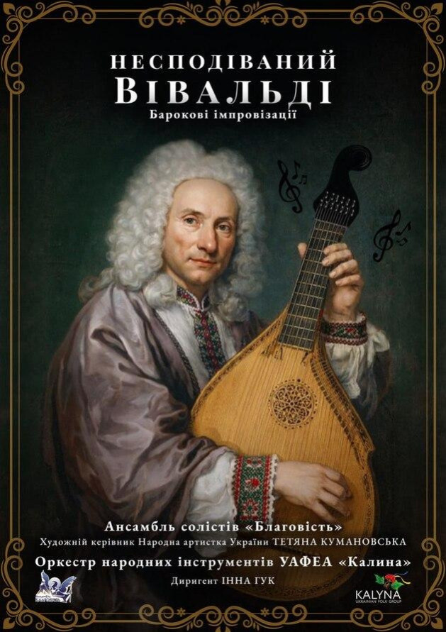 ВПЕРШЕ стиль італійського бароко творів Антоніо Вівальді розкриється у фарбах українських автентичних інструментів. А знаменита «Gloria», прозвучить у неочікуваному форматі. І навіть традиційна інструментальна музика А. Вівальді пролунає у нетиповому виконанні.