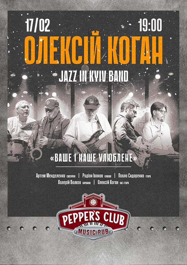 Запрошуємо вас провести джазовий вечір із м’яким блюзовим присмаком разом з Олексієм Коганом та JAZZ in KYIV Band. Програма «Ваше і Наше улюблене» об’єднує впізнавані мелодії, камерне звучання та спокійний, дуже вайбовий настрій у затишному просторі Pepper’s.