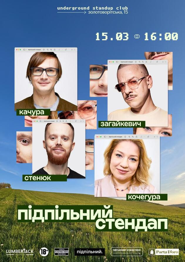*вхід для бійців ЗСУ та ТРО - безкоштовний (за попереднім записом в інстаграм @undergroundstandupkyiv)