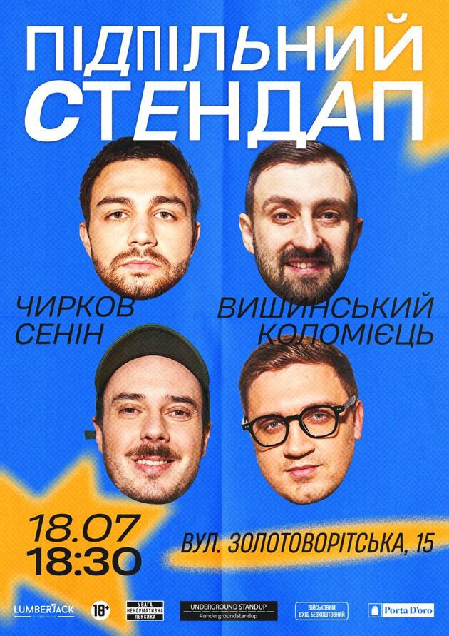 *вхід для бійців ЗСУ та ТРО - безкоштовний (за попереднім записом в інстаграм @undergroundstandupkyiv)