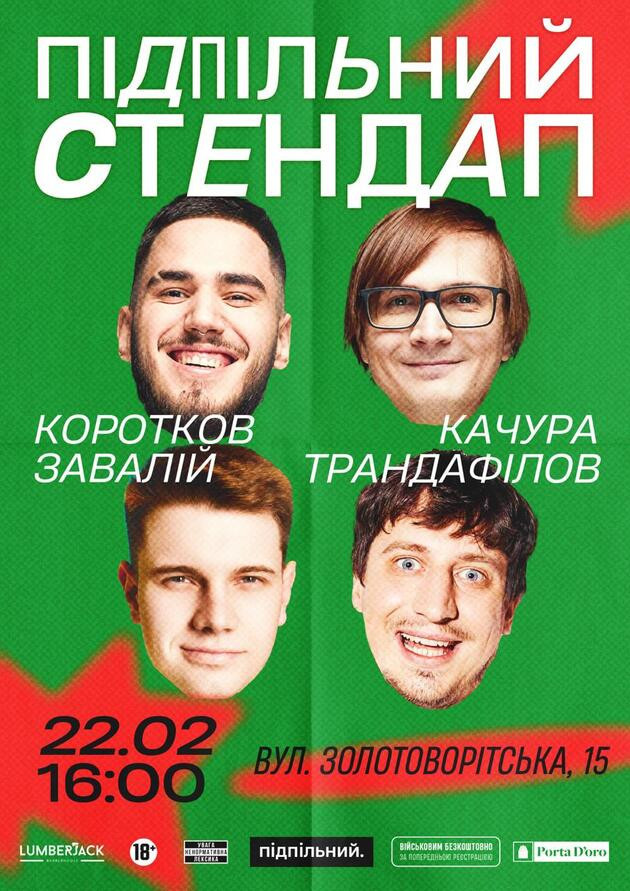 *вхід для бійців ЗСУ та ТРО - безкоштовний (за попереднім записом в інстаграм @undergroundstandupkyiv)