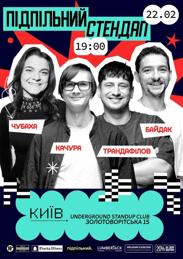 *вхід для бійців ЗСУ та ТРО - безкоштовний (за попереднім записом в інстаграм @undergroundstandupkyiv)