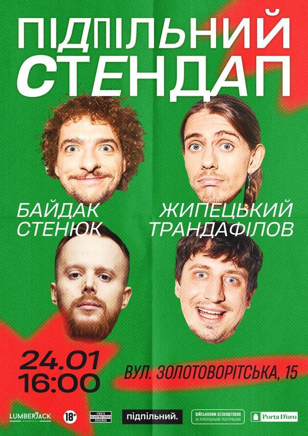 *вхід для бійців ЗСУ та ТРО - безкоштовний (за попереднім записом в інстаграм @undergroundstandupkyiv)