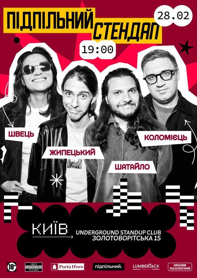 *вхід для бійців ЗСУ та ТРО - безкоштовний (за попереднім записом в інстаграм @undergroundstandupkyiv)