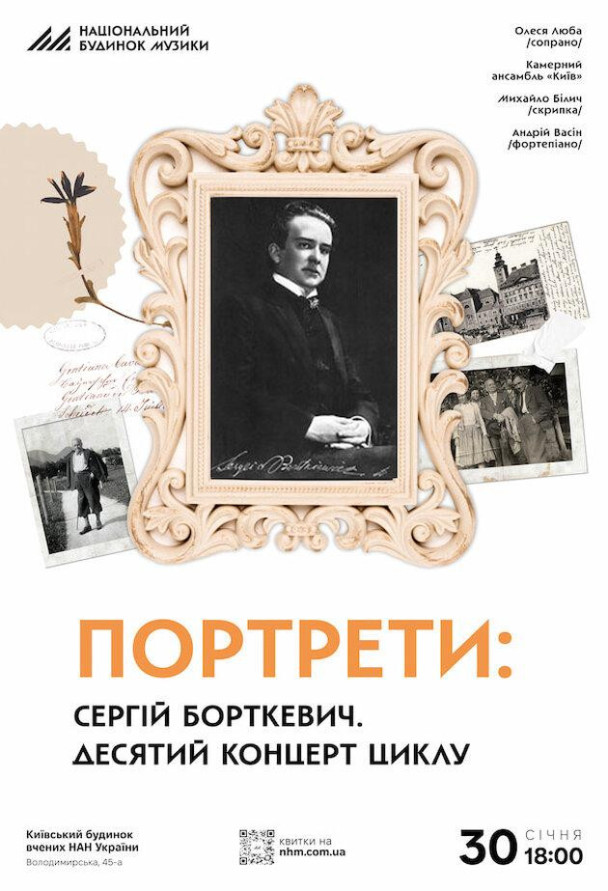 Камерний ансамбль «Київ» у своєму циклі монографічних програм «Портрети» звертає цього разу увагу до постаті Сергія Борткевича — уродженця Харкова, чия доля, сповнена випробувань еміграції, сформувала митця європейського масштабу. Борткевич — один із найпоетичніших голосів початку ХХ століття, його музика поєднує романтичну виразність із витонченим ліризмом. Він прожив більшу частину життя поза Батьківщиною — у Константинополі, Софії, Відні, — але у своїй музиці повертався і до України, зокрема, до спогадів про Харків і Крим.