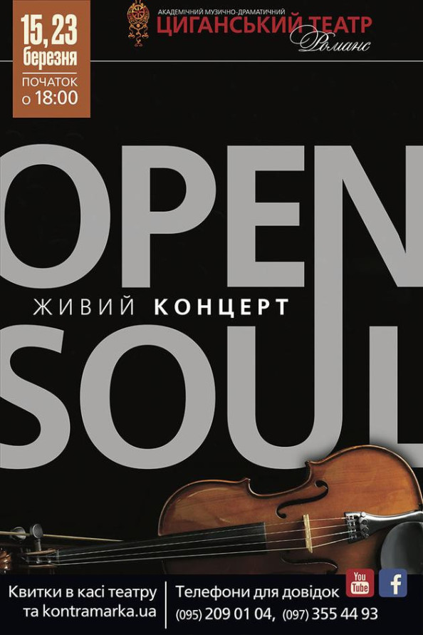 Щоб потрапити на “Живий” концерт “Open soul” у Києві, купуйте квитки на нашому сайті та у касах міста. Ще більше вистав в афіші Києва шукайте у нас на сайті.