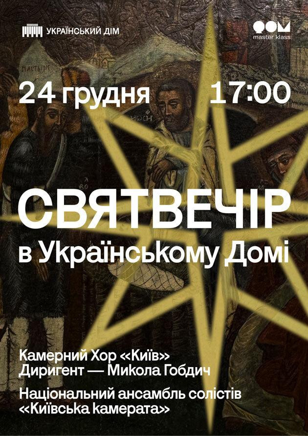 У Святвечір Український Дім наповниться світлом музики, що об’єднує покоління та знаходить шлях до глибин душі. Запрошуємо вас провести цей вечір в атмосфері справжнього різдвяного дива — теплого, щирого й урочистого.
