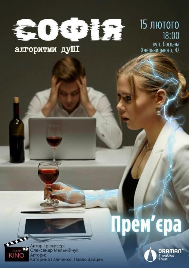«Софія. Алгоритми дуШІ» — вистава не про людину і штучний інтелект, а про самотність, кохання та спокусу контролю, про межу між реальністю та ілюзією.
