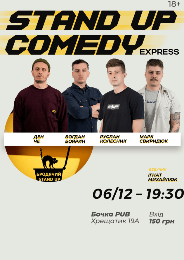На борту цього комедійного експресу вас чекають 4 талановитих коміки, кожен з яких представить свій унікальний та переважно новий матеріал протягом 15 хвилин.
