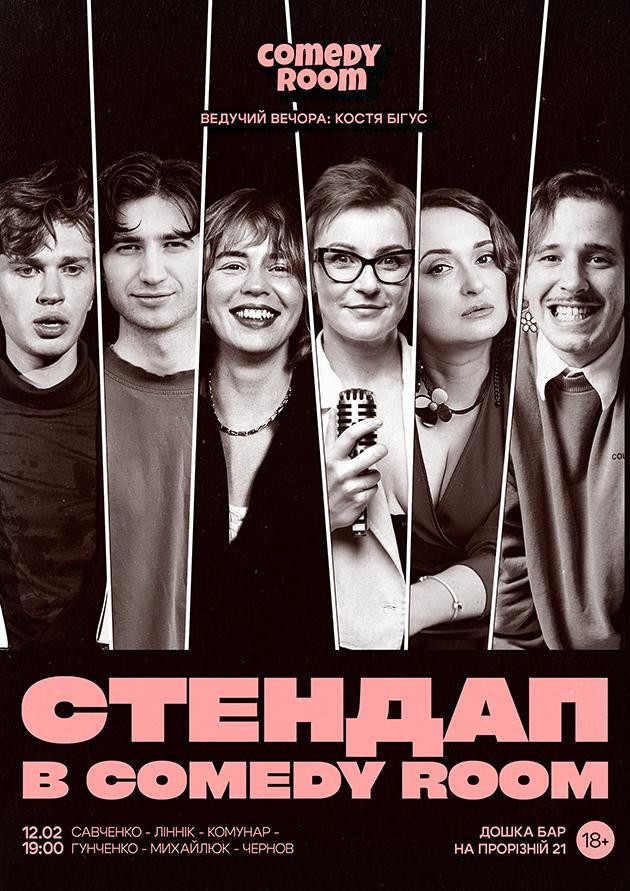 До зустрічі у Comedy Room 12 лютого о 19:00 за адресою вул. Прорізна 21 "Дошка Бар"