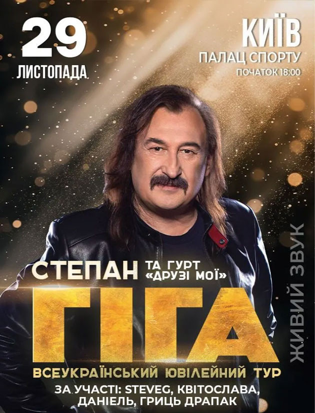 Легендарний Степан Гіга повертається до Києва, щоб влаштувати грандіозний концерт у Палаці Спорту. Пісні цього гранда української естради вже давно зараховано до культурної спадщини – в них стільки тепла, любові і підтримки. Приходьте, щоб співати улюблені треки Степана Гіги та класно провести осінь!