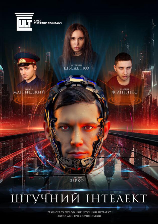 «Штучний Інтелект» — це вистава-антиутопія, дії якої відбуваються у кімнаті для допитів, де головні герої та ШІ (штучний інтелект) зіштовхуються в інтелектуальному протистоянні, виборюючи право на життя та свободу.У світі, де керування правосуддям захопив штучний інтелект, глядачі переживають напругу та роздумують над моральними та етичними питаннями цифрової диктатури. Чи може машина визначати правду? Чи може вона забрати у людини її гідність та свободу? Ця вистава надихає глядачів до глибоких роздумів про майбутнє, де людина бореться за свої права проти влади технологій. Блюзнірська, неполіткоректна, бурлеск-комедія про світову змову, а також про секс і насильство в умовах цифрової диктатури з непередбачуваним фіналом, яка точно не залишить вас байдужими.
