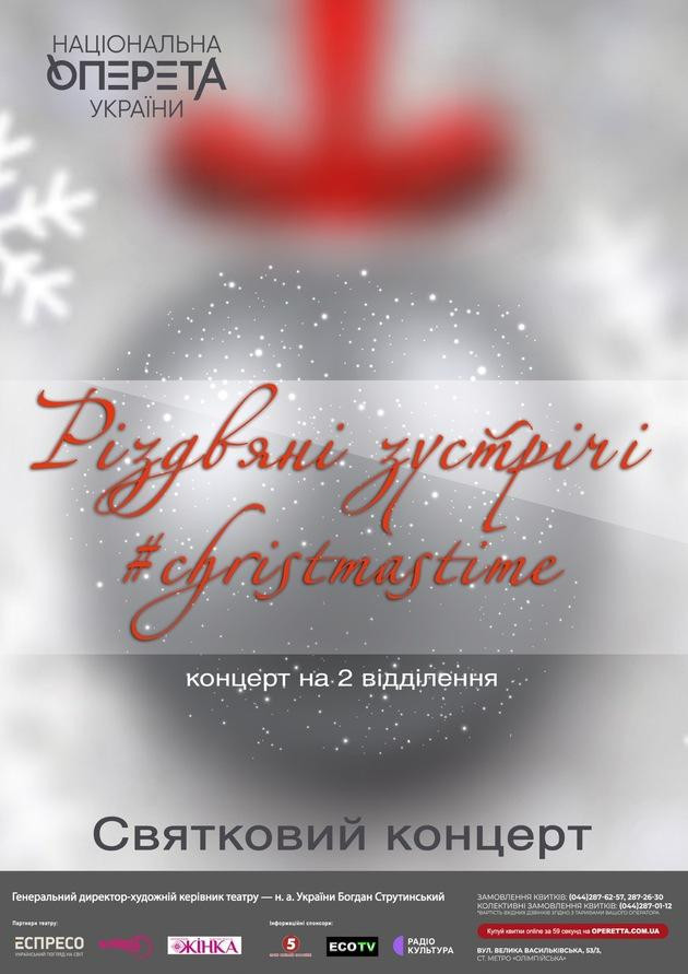 Купуйте квитки на концерт «Різдвяні зустрічі» у Київській опереті на нашому сайті та у касах міста. Ціна квитків від 200 до 2200 гривень. Ще більше новорічних концертів шукайте в афіші на нашому сайті.