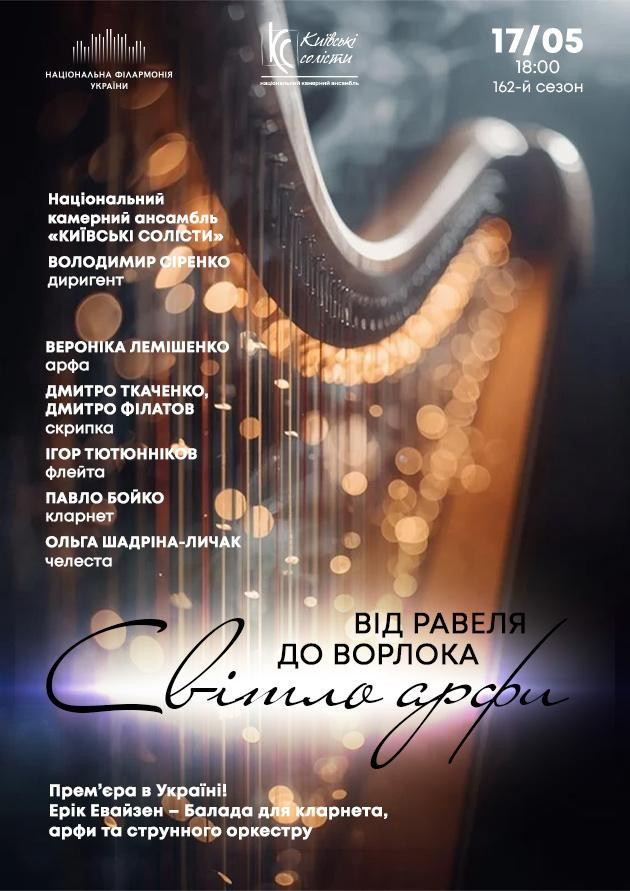 Програма Національного камерного ансамблю «Київські солісти» під орудою Володимира Сіренка розкриває арфу як джерело світла й внутрішньої рівноваги. У виконанні Вероніки Лемішенко цей інструмент звучить то кришталево прозоро, то ніжно й сповідально, об’єднуючи різні епохи й стилі в єдину емоційну лінію.