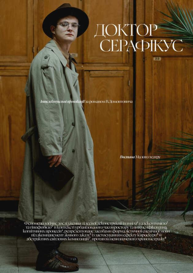 ⁵ Актори не зможуть діяти серйозно: вони приречені бавитися. Бавитися, як дорослі діти, що знайшли на горищі стару друкарську машинку і намагаються набрати на ній партитуру для фортепіано. Це буде емоційно, до мокрих очей, але не сплутайте ненароком сльози з офтальмологічним секретом залоз. Це просто вихлюпування зайвого інтелекту через канали щирості. Під час проведення цього експерименту допускаються раптові мандрівки в мультивсесвіти, де 1920-ті роки яскраво пробуджуються під живий акомпанемент джазової музики, а сам Домонтович усміхається з кутка сцени, тримаючи в руках ліхтарик.