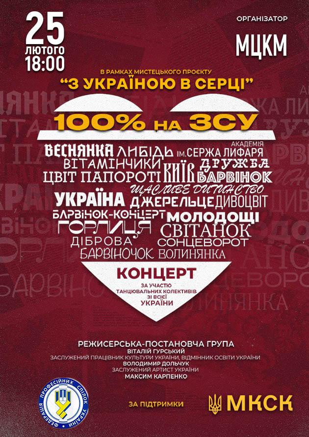 25 лютого 2025 року у МЦКМ "Жовтневий палац" відбудеться концерт “З Україною в серці” у Києві.