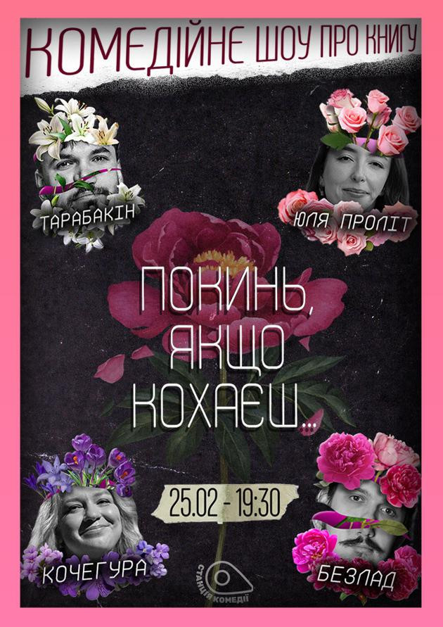 Запрошуємо вас на комедійний огляд книги «Покинь, якщо кохаєш» — відверте й іронічне шоу, де популярний роман про кохання, біль і «червоні прапорці» стає приводом не лише поплакати, а й добряче посміятися.