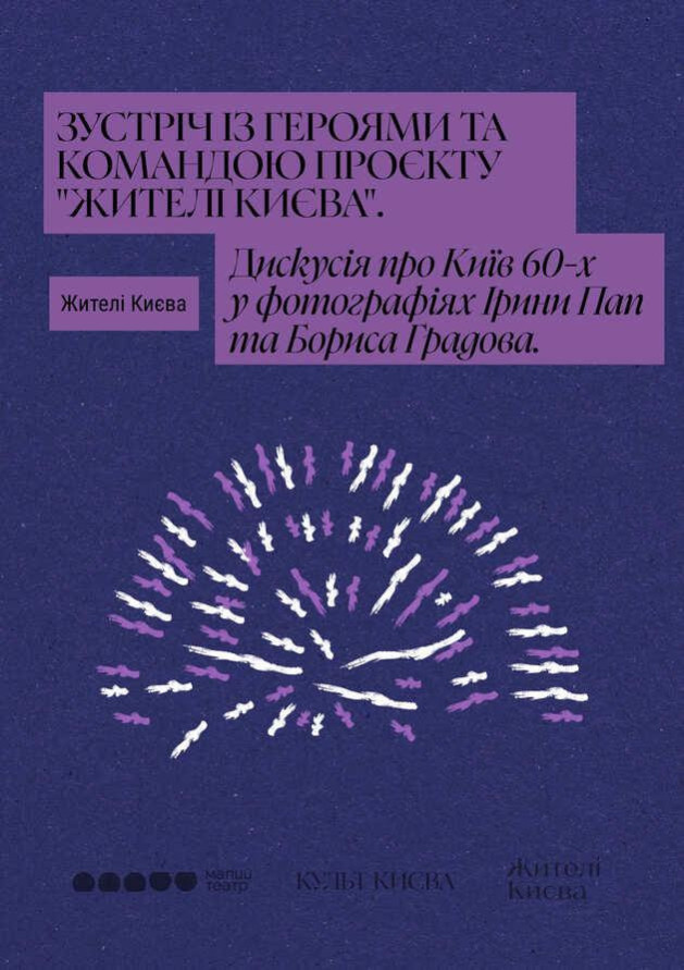 У межах камерного фестивалю локального мистецтва «Культ Києва: Київ шістдесятників» відбудеться зустріч із героями проєкту «Жителі Києва», які поділяться своїми спогадами про Київ 60-тих. Поговоримо про те, якою була наша столиця, як вона змінилась, що треба підтримувати у ній, а чого варто позбутися, за що хочеться любити наш Київ. Це і є місією спільноти «Жителі Києва», яка існує з 2016 року – досліджувати місто, показувати його з різних боків, знайомити з його жителями та закохувати людей у Київ.